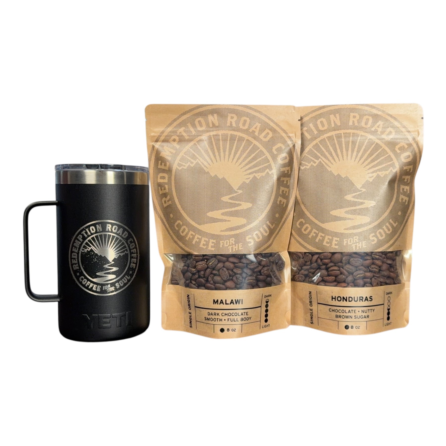 Redemption Road Coffee Christmas Gift Box – Custom Engraved YETI + Premium Single-Origin Coffee